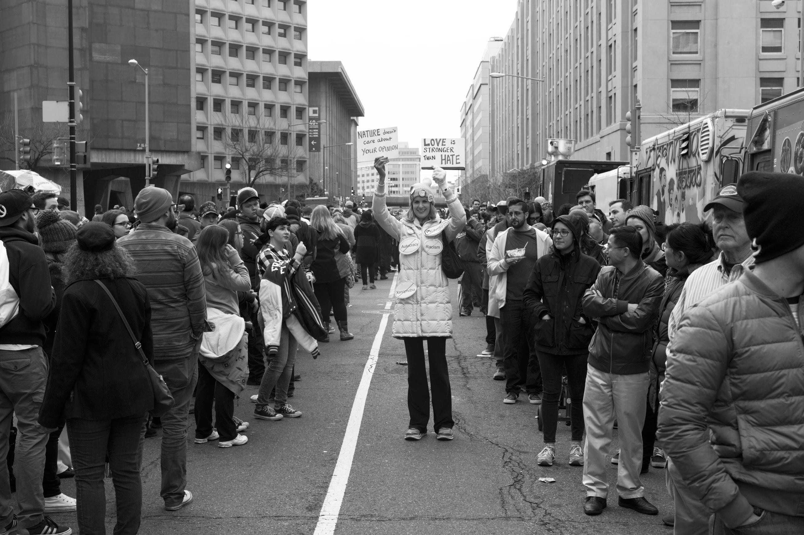 This year, we weren't standing on the Mall as we were then. But spiritually we were in the same place. We were standing with those whose voices aren't often heard—with people who have continued to be disenfranchised, their votes suppressed, their citizenship seen as a threat. We were standing with a diverse array of Americans against misogyny, racism, bigotry, and authoritarianism. We were standing with those who understand that praise for, and vital assistance from, the likes of Vladimir Putin is a disqualification from being the leader of the free world.